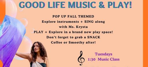 Join us for a special fall-themed pop-up featuring music, movement, and play! Children will enjoy an engaging music class with Ms. Krysta, followed by free play in our playroom.